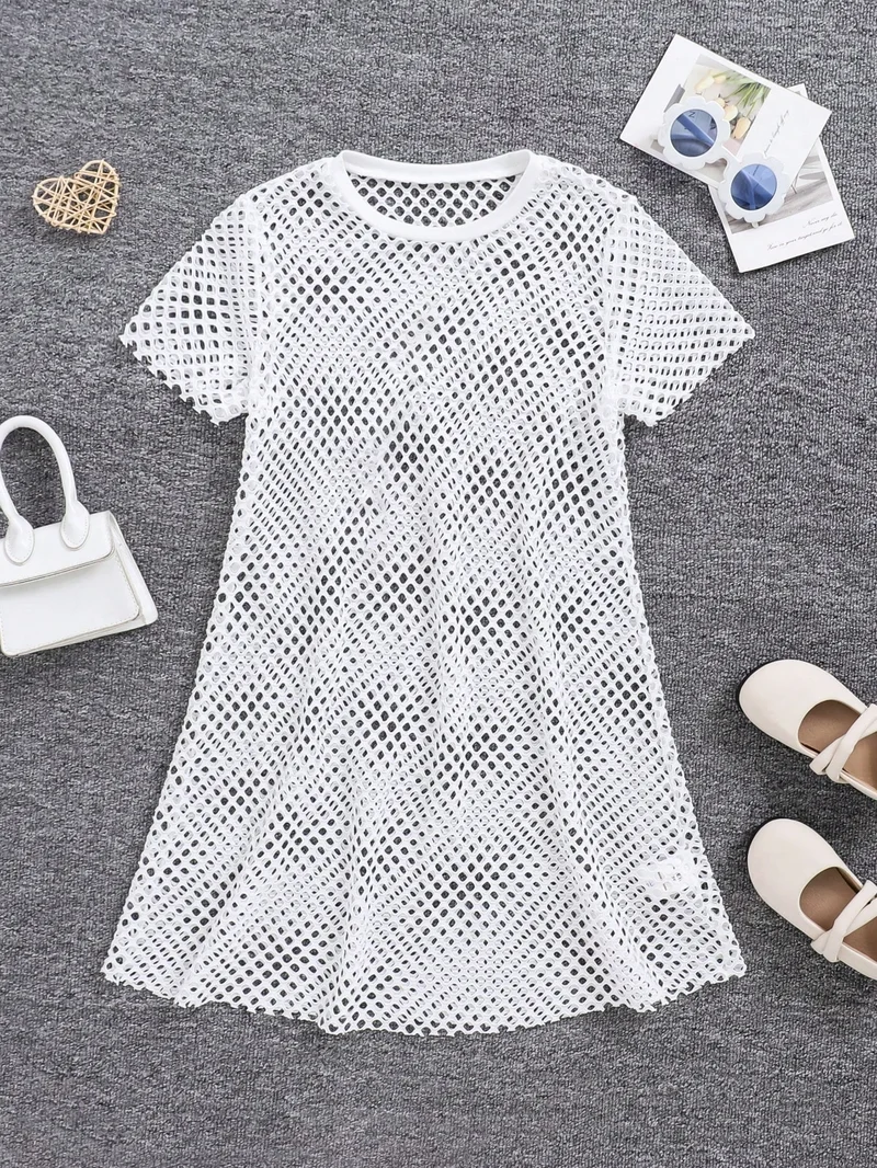 Malla De Manga Corta Cuello Redondo De Punto Casual Para Niñas